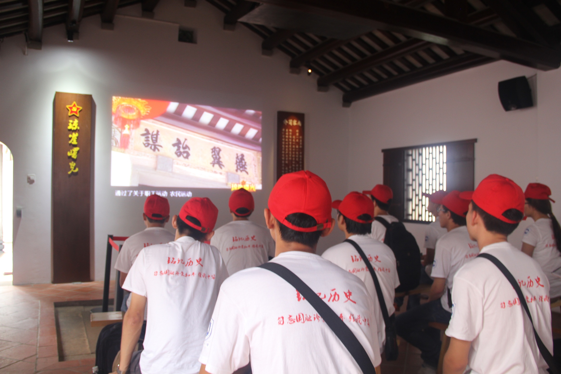 位于古韵犹存而又充满现代活力的骑楼老街中心,中共琼崖一大旧址邱家宅院安静的坐落在那里,像一个饱经风霜的老人,在自豪的欣赏着他子子孙孙的生活。进入邱家宅院,雕梁画柱,四合院设计,典型的琼北传统民居。中共琼崖一大正是在这里召开。在这里,选举产生了中国共产党琼崖地方委员会,揭开了琼崖人民革命斗争崭新的一页,确立了海南这一片区革命的核心,海南革命从此有了精神的指导。正是在这样一个地方,孕育了红色革命不屈的精神,为“二十三年红旗不倒”的奇迹建立了不可动摇的根基。中共琼崖一大旧址于2001年被国务院公布为全国重点文物保护单位,是海南省开展保持共产党员先进性教育、爱国主义教育和青少年思想道德教育的重要场所。寻访团跟随着讲解员的脚步,一一参观了中共琼崖一大旧址内的史料展,聆听了海南琼崖地区的革命抗战历史。随后,寻访团还在中共琼崖一大旧址内的投影室观看“琼崖曙光”,在场学生对海南琼崖革命抗战史有了更进一步的认识。