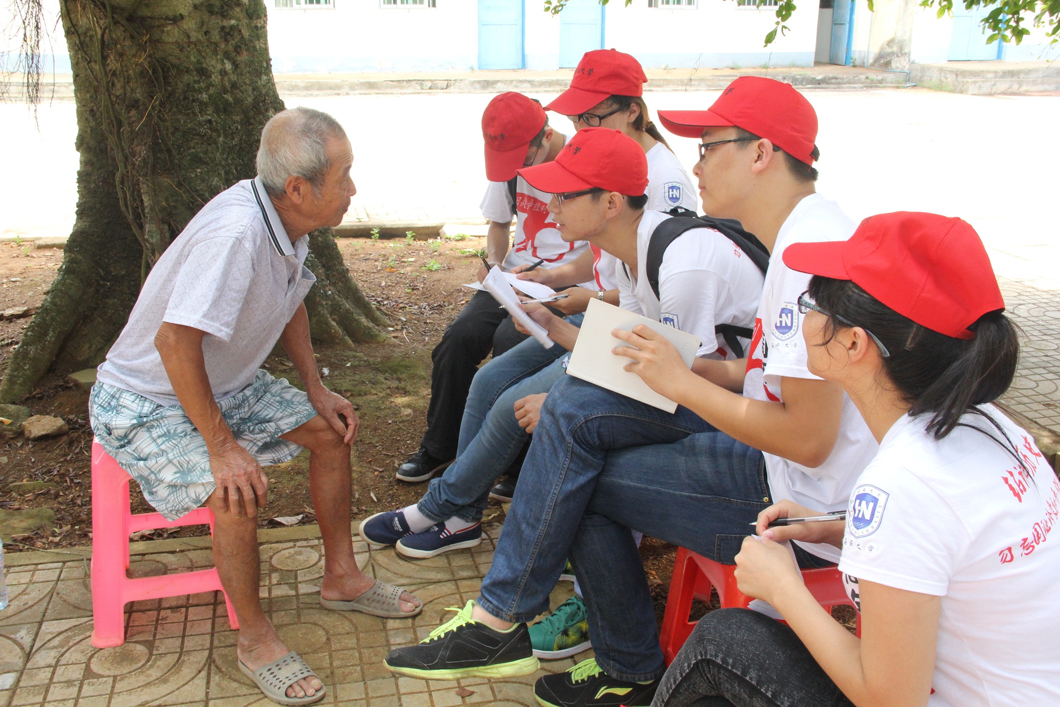 玉仙村,地处云龙、龙塘、灵山三镇交界处,南渡江畔,距潭口码头七八百米,275户人家,人口近千人,是人多地少的村庄。寻访团到达玉仙村村口后,由事先联系好的周队长(玉仙村第一组队长)带领一行人走进玉仙村。由周队长带领一行人对抗战老兵以及烈士家属进行访谈,据周队长介绍,玉仙村有10人被政府追认为烈士。寻访团第一位采访的对象是冼因明老先生,冼老先生是当年玉仙村地区的儿童团主要成员之一,据描述,当年白天由儿童团放哨,晚上由青年放哨。就在大榕树下,冼老先生为前来的寻访团讲述了当年潭口革命斗争史,极为生动的描述当年潭口渡口打响第一枪的场景。紧接着,冼老先生用亲眼目睹的事件揭露了日本侵略者的残酷之行,让在场寻访团为之而气愤不已!访谈结束之际,寻访团为冼老先生送上本次活动纪念品。随后,寻访团进行相应的分组,深入玉仙村,寻访抗战老兵以及烈士家属。