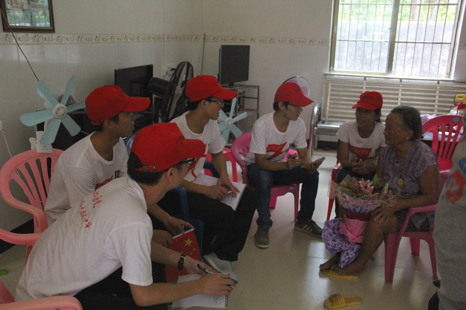 经过一路颠簸,寻访团来到地绿村的抗战老兵赖月花同志家中。她已经93岁,依旧精神焕发,身体十分硬朗。她向寻访团讲述自己的故事,战争给人民带来深重苦难,她不惧危难于1941年加入琼纵独立团,作为一名护士在抗战最前线与敌人英勇作战并负责后勤工作,虽然环境十分恶劣生活极其艰苦,为了祖国的安危,她选择了坚持为现在的和平生活做出巨大贡献。同学们深深的被赖月花同志的英雄事迹所震撼,感动得纷纷留下了眼泪。随后,寻访团来到群建村的抗日老兵陈青同志家中。93岁高龄的她热情欢迎我们的到来,像我们谈起那段刻骨的往事。在海南饱受日军侵略之时,她没有选择逃避,满怀壮志豪情的她于1938年入党,与敌人斗智斗勇。面对凶残的敌人她没有畏惧,面对恶劣的环境她没有抱怨,一心把党放在心中以祖国安危为大。她讲述着当年抗日战争的经历,把我们带回到那个战火纷飞的年代,同学们被老人的勤俭朴素,艰苦奋斗的抗战精神所感动。临走时,老人还告诫我们青年大学生,要铭记历史,立志勤学报效祖国,发挥专业特长服务社会,为建设伟大祖国而不懈奋斗。接着,寻访团来到位于文昌市昌洒镇古路园村的宋氏故居。在解说员带领下,我们走进宋氏纪念馆并详细了解宋氏家族的发展史,宋庆龄的家世再到宋庆龄积极投身民主革命并在抗日风云中的一些事迹然后成为杰出人民领袖,她为世界和平作出不懈努力成为世界和平使者,她关心下一代成长,致力缔造未来并为家乡建设做出卓越贡献。一幅幅字画,一件件大事给同学们留下深刻的印象,同学们参观之余详细的作出笔记。随后我们来到了宋氏祖居,宋氏祖居为传统的海南民宅建筑,围墙正门横楣上方由邓小平题写“宋氏祖居”四个金色大字,走进故居我们看到了宋氏家族所用过的日常用具及房屋的布局。通过讲解员的详细解说使我们对宋氏故居有一个更加全面的认识,收获颇多。