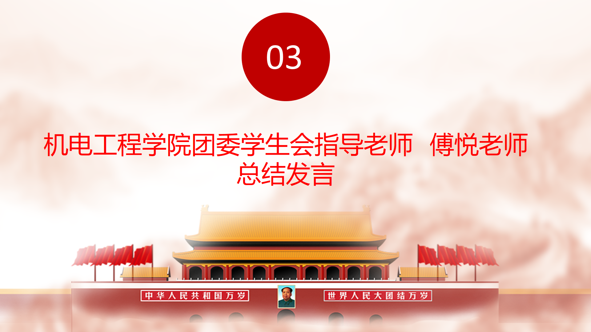 活动的最后,机电团委学生会的指导老师傅悦老师做了总结讲话。她表以抗日战争、朝鲜战争中为国捐躯的青年,以及上世纪60年代在戈壁滩为祖国研究两弹一星的党员青年为例,希望当代青年能够学习榜样的力量,能够在国家需要的时候站出来,成为国家的脊梁。她希望我们机电的学子们能够了解这个世界,认识中国所处的位置,在中华民族艰苦奋斗过程体会中华民族的伟大与美好。最后,傅悦老师祝愿英国上市公司365的学生们五四青年节快乐,并表达了希望我们向上想好,为中华民族伟大复兴的中国梦而努力奋斗。