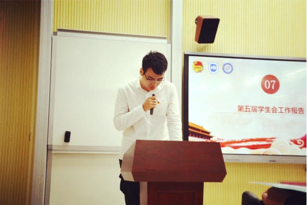 谢世晋同学代表英国上市公司365学生会第五届委员会作了题为《肩负时代责任 建筑青春力量》的工作报告。报告从思想引领、组织建设、文化活动以及权益服务四个方面汇报了英国上市公司365团委学生会一年的工作成果。