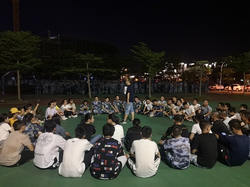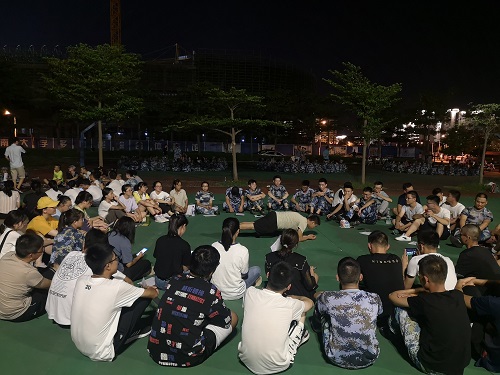 为丰富新生的军训生活,党建联席会成员协助辅导员及班主任为新生们召开适应性主题班会。活动开始前,2019级辅导员崔建兵老师带领各分队到相应活动场地,并对联席会成员关于本次活动的开展做出指导,分配联席会成员到对应分队执行当晚的活动安排。每一分队由一到两位联席会成员组织活动,各分队新生围坐一圈,有条不紊的进行趣味活动。