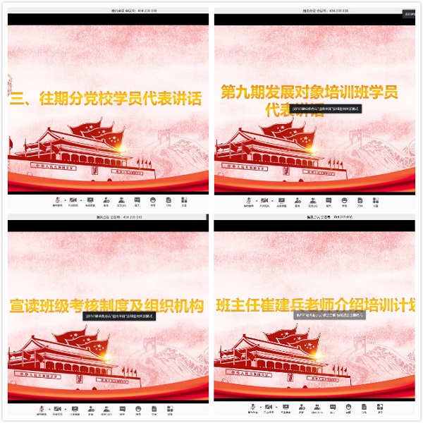 方瑾代表往期分党校学员讲话,希望全体学员珍惜党课学习机会,提升党性修养,争取早日加入党组织;李越代表第九期发展对象培训班讲话,严格要求自己,努力提升自身素质,为自己加入党组织做好准备;党建联席会副主席刘琨宣读班级考核制度及组织机构。培训班班主任崔建兵介绍了第九期分党校培训计划具体安排。