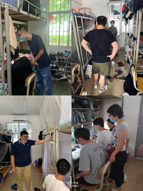 在走访过程中,学院各位老师首先询问学生返校后遇到的困难和问题,针对大家的困惑给出有效的解答建议。叮嘱同学们现在仍是疫情防控阶段,在寝室要做到不聚集、不串门、勤洗手、戴口罩,做好每日三检,监测体温,及时上报。注重宿舍卫生环境,养成良好的生活习惯,以崭新的精神面貌投入到学习中。并提醒同学们应提高安全防范意识,着重强调了用电、交通、财产安全等相关事宜。