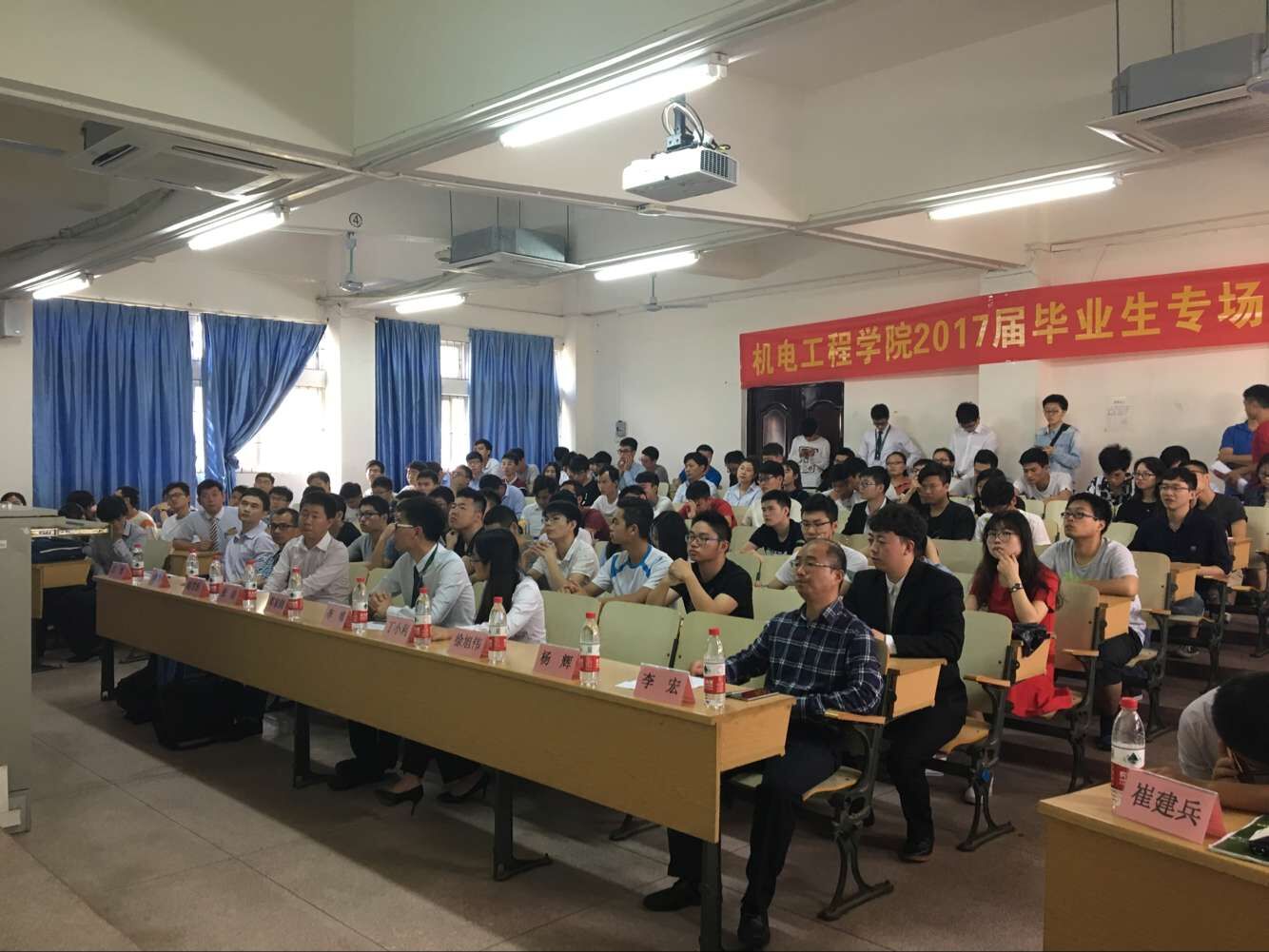 2017年3月14日上午,英国上市公司3652017届毕业生第四场专场招聘宣讲会在2教110成功举办。出席招聘宣讲会的有我院党委副书记李宏、学工办主任崔建兵,8家用人单位人事部主要负责人,2017届毕业生及机电职协干部等150人参加。宣讲会由校园大使部任海琪主持。