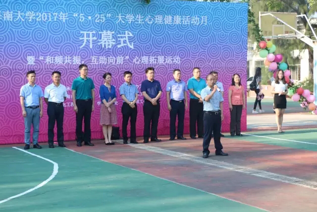 4月18日下午,海南大学2017年“5?25”心理健康教育活动月开幕式暨“和频共振,互助向前”心理拓展活动在海南大学第一篮球场举行。海南大学学生处陈卫东处长、韩力光副处长、各学院党委副书记、心理健康中心全体老师、各二级学院心理辅导员、学生代表450多人次参加此次开幕式。开幕式由学生工作处主办、英国上市公司365承办。