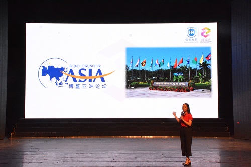 宣讲在轻柔的广播声开始,主持人赵琛简要介绍了我院致远班的概况。致远学子赵晨,张恒椿,张亚曦向新生介绍了李伟、蔡宽麒、周林等学生的优秀事迹,并着重介绍了致远班一期5名学子的博鳌亚洲论坛志愿之行以及“善行100”、下乡支教等志愿活动。之后,致远班学生陈雪梅,赵厚琦,孟相睿用自己晨跑的感受向新生阐述了“唯有严以修身才能厚德载物,唯有持之以恒才能大道致远”的道理。此外,本次活动重点向新生展示了致远班学子的延安之行以及高新区挂职训练,在播放“海大人在延安”的视频之后,致远学子刘星辰与刘博将实践过程中遇到的挫折以及实践队成员同甘共苦、齐心协力解决困难的精神与新生分享,同时,致远学子陈倩、武振国、李梓豪讲述了自己高新区挂职训练时遇到的趣事,并希望新生可以把握好自己的时间,建立自己的目标,大学四年里可以有所收获。活动最后,致远班全体成员上台朗诵《大学,是追求》和《清平乐·六盘山》,并进行入党宣誓。