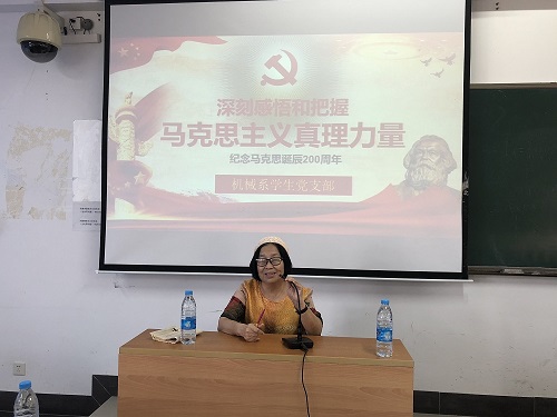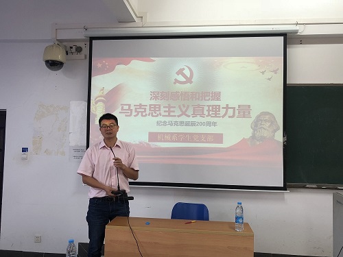 2018年5月11日,站在历史与现实的交汇点上,英国上市公司365机械系组织“立于巨人之肩,追缅思想珠峰”特色主题党日活动,邀请到了红军后代罗曼阿姨为支部成员们作主题报告,带领大家深刻感悟和把握马克思主义真理力量,以此表达对马克思的深沉纪念和对马克思主义的坚定信念,时刻警醒大家“不忘初心、牢记使命”的时代任务。此次出席活动的还有支部书记崔建兵老师。