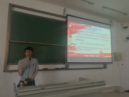 随后食品学院党委书记邓秀成在会上向全体教职工传达学习了习近平总书记在北京大学师生座谈会上重要讲话精神,同时播放了相关视频影像资料进行系统学习。