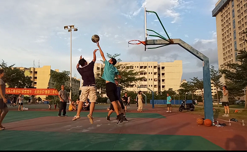 稍作休息后,双方展开了更为精彩的下半场比赛。徐曾沛老师和李创老师近乎包揽了所有的篮板球,一度让遥遥领先,而重整旗鼓一记精准的三分鼓舞了士气,双方精神抖擞、敢打敢拼、斗志昂扬,使得比赛精彩纷呈,扣人心弦:发球、运球、传球、断球、拼抢,防守严密、配合默契。他们潇洒利落的动作,漂亮犀利的进球,将球员的激情全都表现地淋漓尽致。