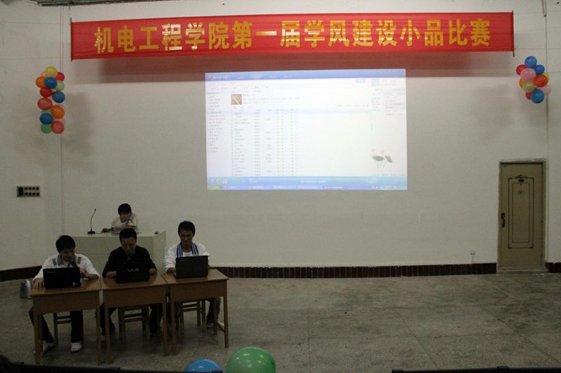 为了推进我院学风建设工作,积极倡导和努力培养优良学风,营造良好的学习氛围,形成好的学习风气。我院于12月6日晚7:30在儋州校区47课室举办了学风建设小品大赛。比赛得到了同学们的积极响应,共个7班级、3个系党支部参与比赛。机械系梁栋副主任、学工办崔建兵、姚广龙、孙佑攀等老师出席并担任评委,和我院四百多名学生一同观看了比赛。