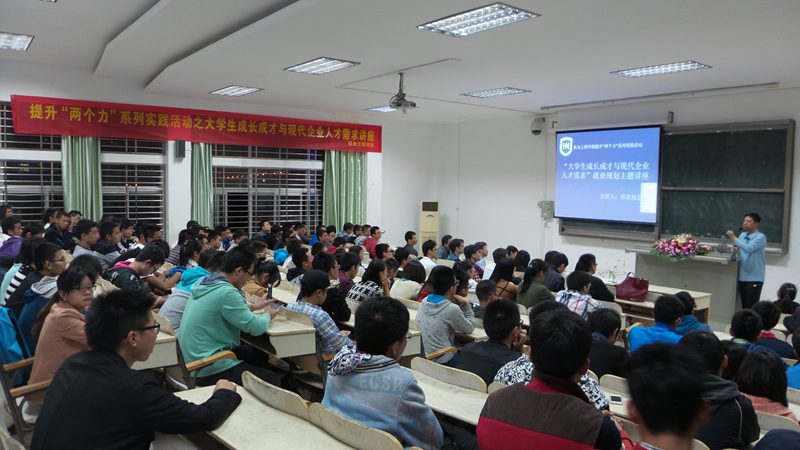 12月14日,英国上市公司365邀请海南现代科技集团董事局副局长兼海南赛诺实业有限公司CEO邢青涛先生在3教212为我院新生作 “大学生成长成才与现代企业人才需求”的主题讲座交流会。学院党委副书记黄国标、辅导员李青老师、海南现代科技集团一行人同部分新生一同聆听了讲座。讲座由黄国标副书记主持。