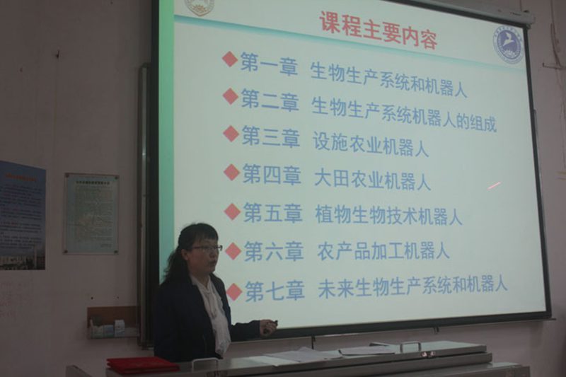 在为期3天的授课中,徐教授全面系统地讲授了以《生物生产系统机器人》为主题的课程,主要对象是2012级机械电子工程、机械设计制造及其自动化和农业机械化及其自动化本科专业的学生,部分教师和研究生也听取了讲座。徐教授首先用通俗易懂的语言阐述机器人的定义和分类,继而引出生物生产机器人的主题;然后,通过对黄瓜、茄子和草莓等蔬菜水果生产机器人的实例讲解,详细地向同学们说明生物生产机器人的基本组成和技术难点;最后,徐教授指出农业机械的发展趋势是农业机械生产的自动化和智能化,建议海南应该研究开发热带作物的智能化机器采收技术。授课过程中,徐丽明教授用其敏锐的眼光、广博的视角、深度的思考启发了在座的每一位师生,同学们认真听讲并积极参与课堂互动,课堂气氛热烈,在场师生也纷纷表示在知识的盛宴中受益良多。