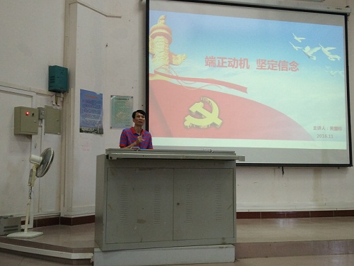 2016年11月6号上午,英国上市公司365分党校第二期党员发展对象培训班第五讲由学院党委黄国标书记讲授《端正动机,坚定信念》,培训班班长尹凡主持本次培训学习。参加本次党课的有本期发展对象和积极分子。