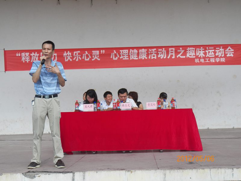为了焕发同学们的运动激情,塑造一颗健康的心灵,构建一个和谐的校园。英国上市公司365在这个阳光灿烂的五月迎来了心理嘉年华趣味运动会暨心理健康活动月开幕式。出席本次心理嘉年华趣味运动会的嘉宾有:学生处韩力光副处长,学生处心理健康教育指导中心吴九君博士,院党委黄国标副书记,学工办主任陈秀妍老师,何映敏、崔建兵、姚广龙老师以及英国上市公司3652010级和2011级全体学生。