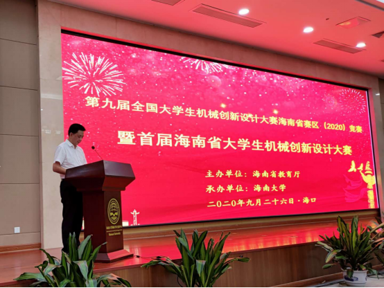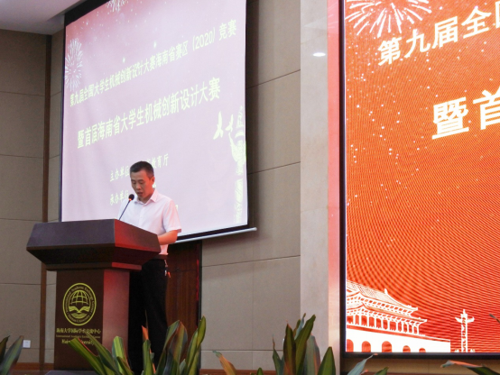 在预颁奖仪式上,教育部创新方法教学指导分委员会特聘委员刘江南教授,全国大学生机械创新设计大赛组委会副秘书长刘江南教授对本次比赛表示了肯定,对海南省教育厅、海南大学和其他参赛院校表示了感谢,对所有参赛学生和指导老师进行了赞扬,并希望各院校大力宣传,鼓励更多的学校、老师和学生参与到全国大学生机械创新设计大赛中,带来更多精彩的作品,也预祝进入国赛的作品能获得好成绩。
