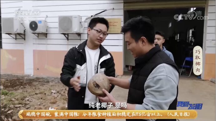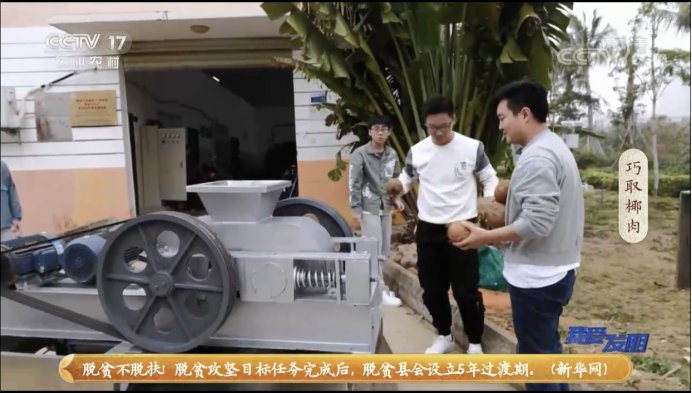 2021年3月4日,中央电视台《我爱发明》栏目报道了我校英国上市公司36517级许阐所在创新团队发明的椰肉分离机。