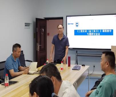 学校本科教学督导员李有军对实验实践类课程检查内容和考核指标进行解读,并指导任课教师做好课程教学材料归档工作。多名教师共同承担了《工程实训(金工实习)》课程教学任务,肖明伟、王玉群、王文、冯活伦、马志英和谭赫等教师代表,汇报了新能源汽车结构认知、普通车工、焊工、3D打印及钳工等相关实验项目的教学大纲、实验内容及要求,大家对教学准备过程中存在的问题和下一步拟开展的工作进行了详细的研讨,会议达到预期效果。