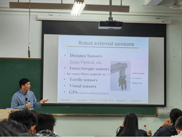 李友福以“机器人视觉传感及轨迹追踪”为主题,系统介绍了机器人发展历史、视觉传感技术在机器人定位、环境感知与轨迹规划中的前沿进展。他结合自身团队在动态场景识别、多传感器融合、智能追踪算法等方面的研究成果,通过丰富的案例与实验视频,生动阐释了视觉技术如何提升机器人的自主性与适应性。李教授还展望了视觉传感在工业自动化、智慧医疗、深海探测等领域的应用前景,鼓励学生积极投身机器人相关研究,关注国家智能制造发展战略。